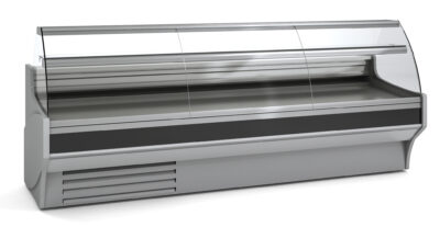 Vitrina Expositora para Carnicería y Charcutería con Reserva Cristal Curvo Ventilada Serie VESPER VE-9-C 2465x940x1235h mm VE-9-25-C-TF Docriluc