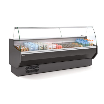 Vitrina Expositora Refrigerada con Reserva Cristal Curvo Evaporador Estático SERIE VED-9 SPEED 2465x940x1224 mm VED-9-25-C Docriluc