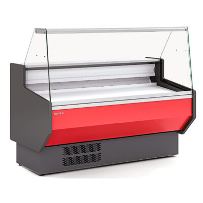 Vitrina Expositora para Carnicería y Charcutería Cristal Curvo Estático Serie NERIA VED-8-C 2465x800x1235h mm VED-8-25-C Docriluc